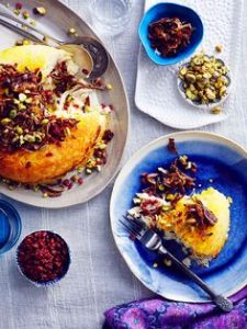 Tah-chin is an Iranian rice dish that can be baked in the oven or cooked on the stove. The description of being a savoury cake always puts me off but please persevere. This is one of my favorite recipes and is a great comfort food.